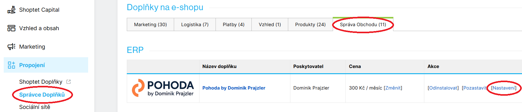 Nápověda k Pohoda – Shoptet propojení